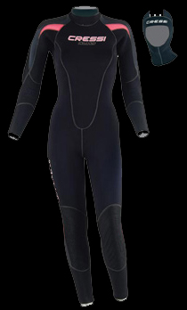 La capucha está separada, con refuerzo de neopreno liso en el contorno facial y en el cuello y una válvula especial Airfree Cressi para eliminar automáticamente el aire contaminado.